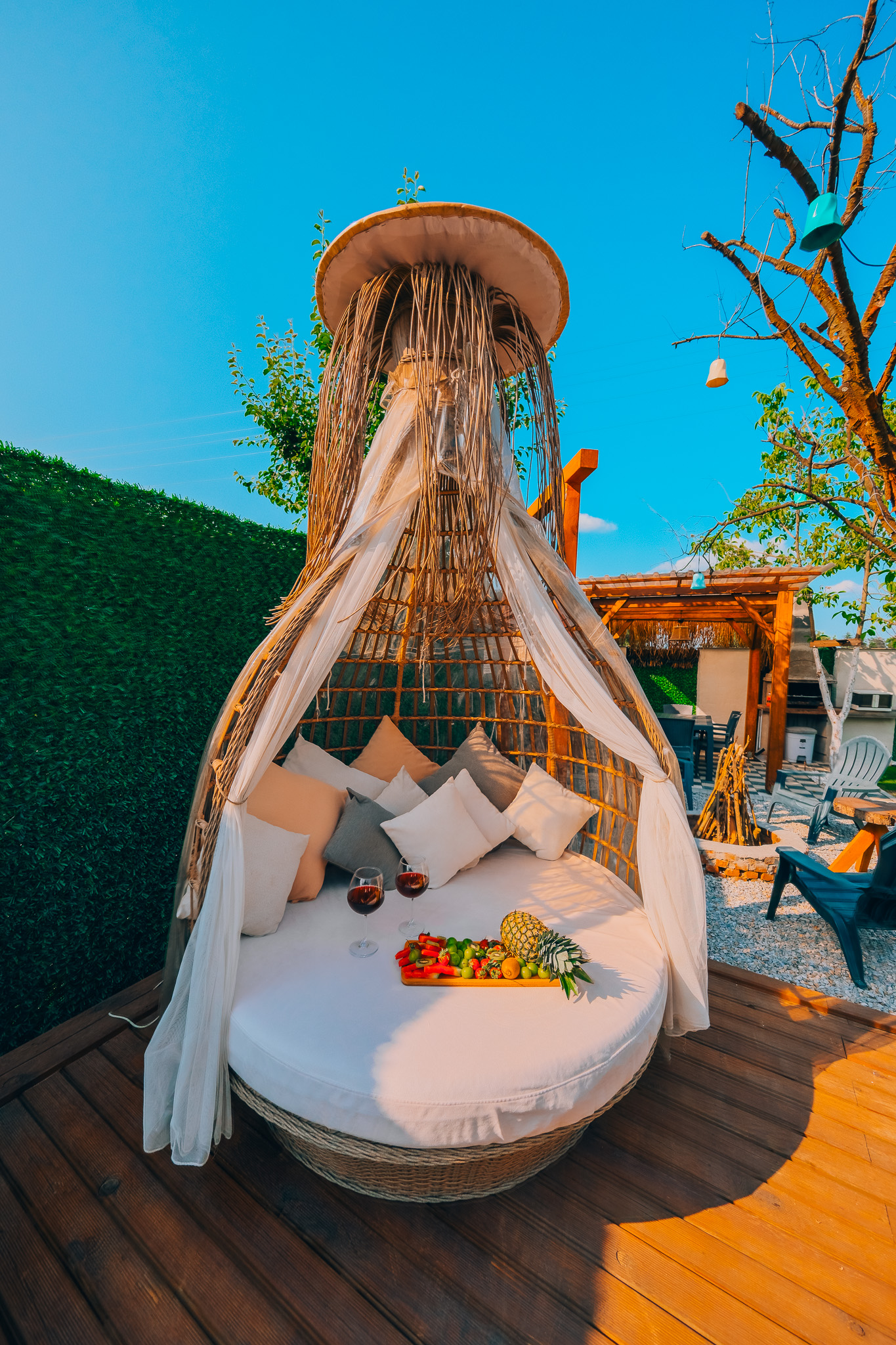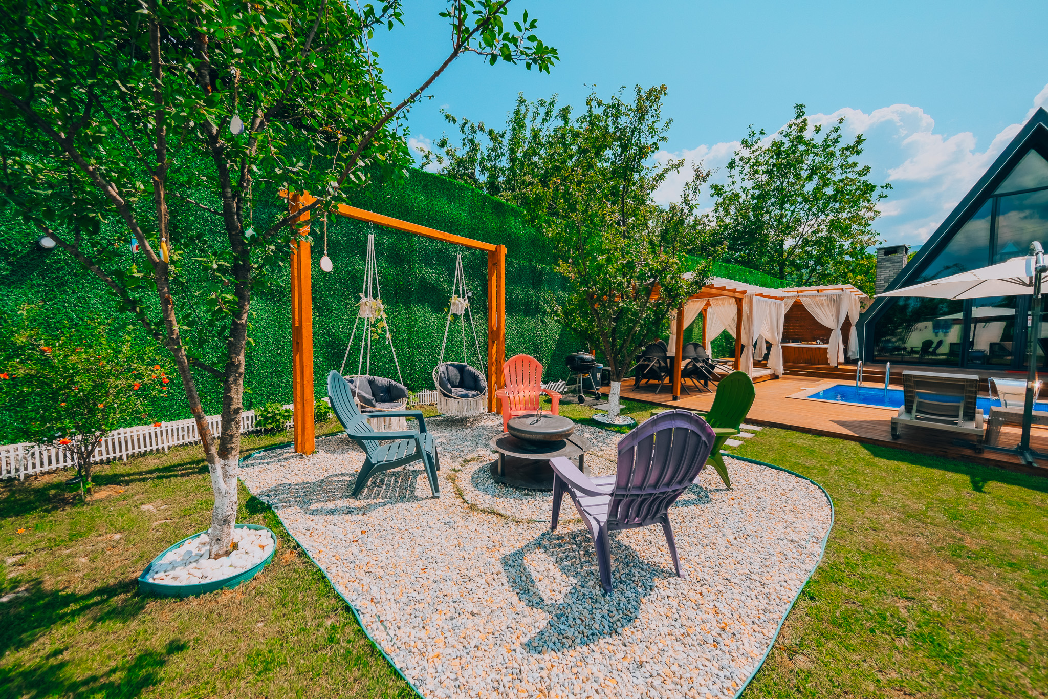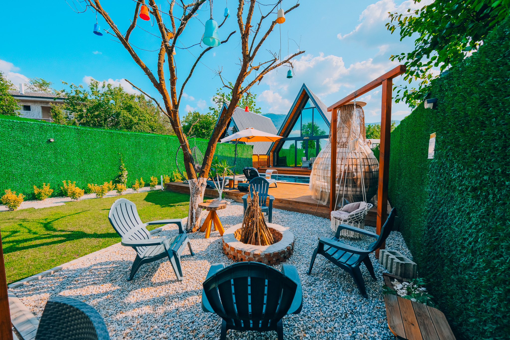 Bungalovlarımızın kendine ait yaklaşık 150 m² genişliğinde özel bir bahçesi bulunmaktadır. Bu alan misafirlerimize doğayla iç içe, huzurlu bir ortam sunarken, barbekü yapma için de uygundur.