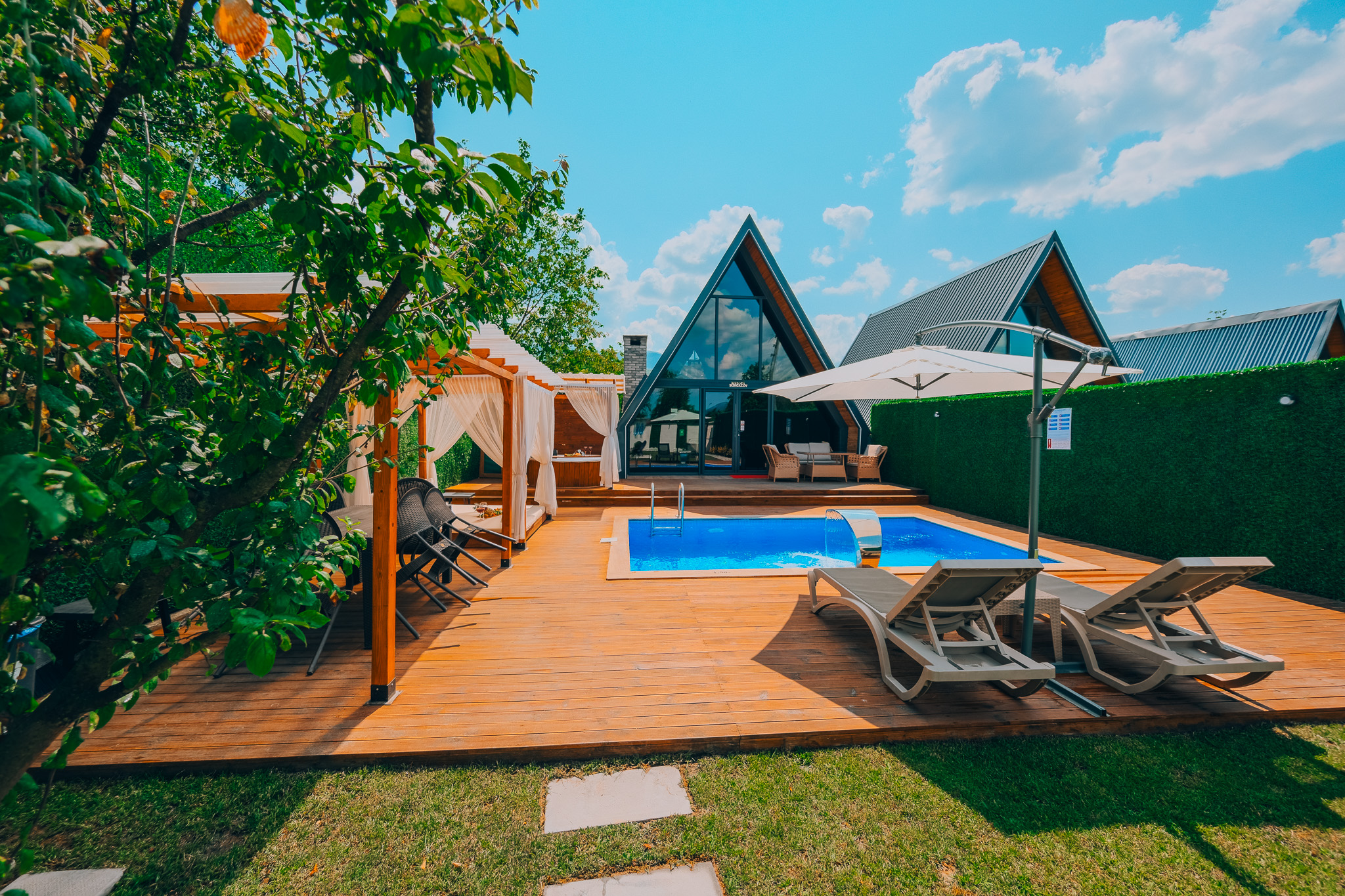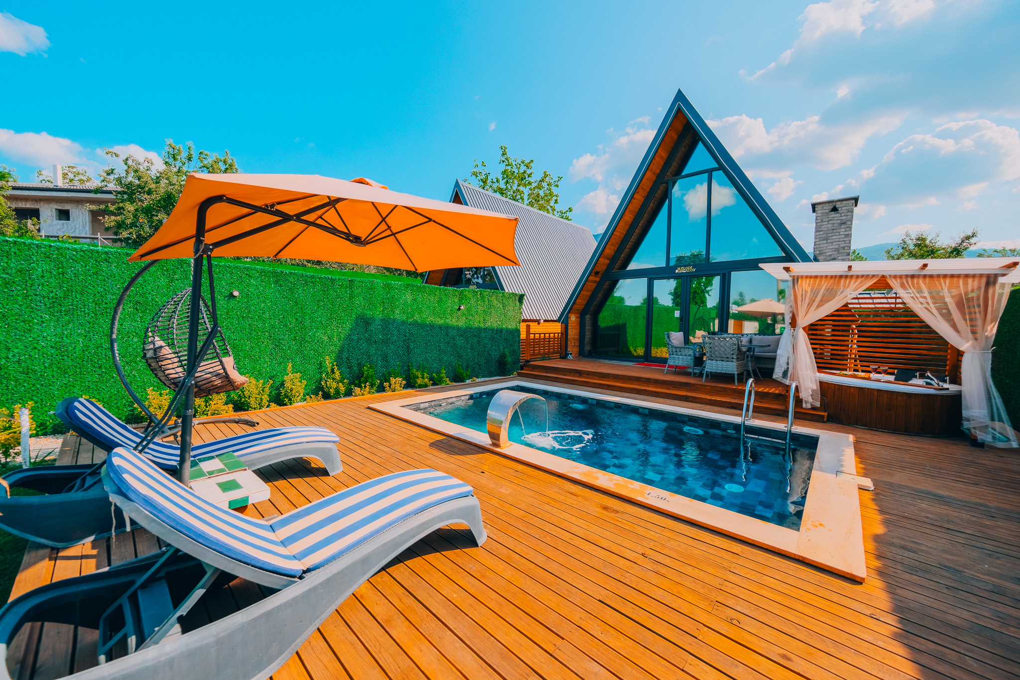 Huzurlu bir tatil deneyimi için özel olarak tasarlanmış lüks bir konaklama seçeneğidir. Sapanca Gölü’nün sakinliğini almış olan bu benzersiz mekan, huzur dolu bir kaçamak sunmak için özenle düşünülmüştür. Her ayrıntısı özenle düşünülen bungalovumuz, ferah ve modern bir iç mekana sahiptir.