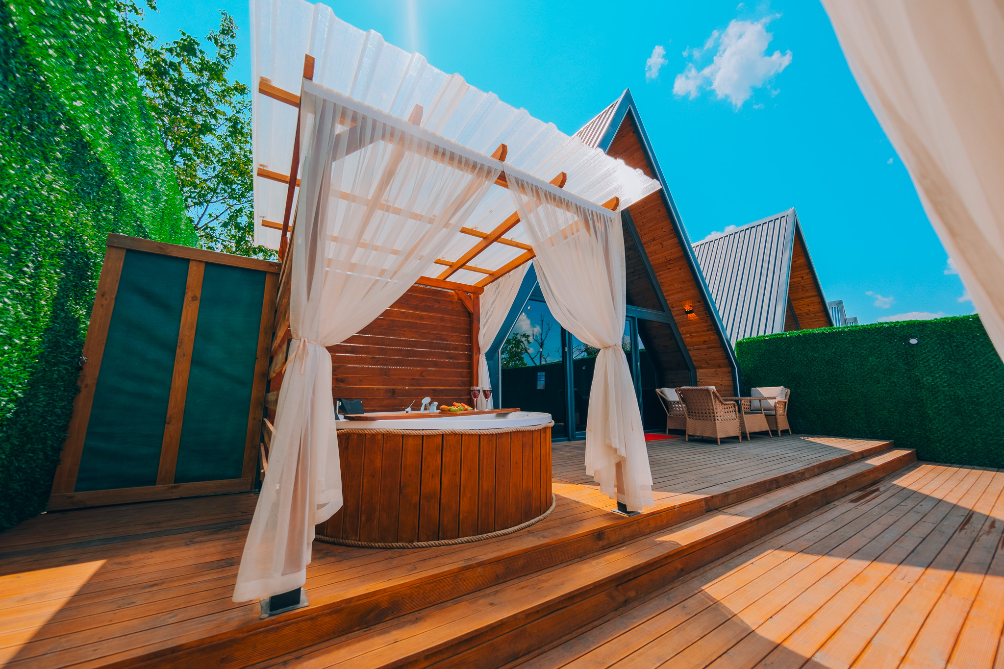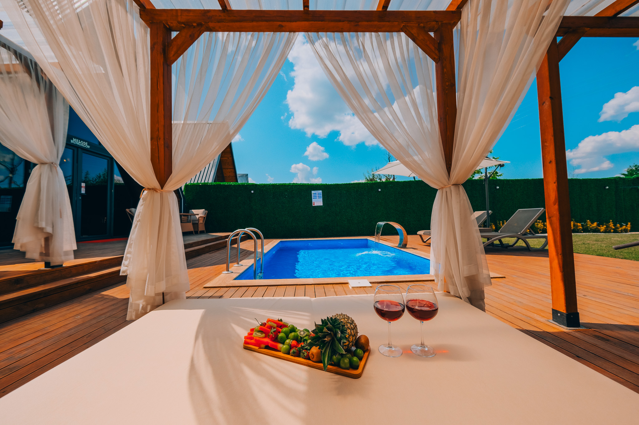 Her ayrıntısı özenle düşünülen bungalovlarımız, ferah ve modern bir iç mekana sahiptir. Konforunuz için özel olarak tasarlanmış yatak odaları, rahatlamanızı sağlayacak bir jakuzi ve şık bir oturma alanı bulunmaktadır. Melodi Bungalov Sapanca’nın konumu da sizin için avantaj sağlamaktadır. Sapanca’nın tüm cazibe merkezlerine kolayca ulaşabilir ve bölgenin doğal güzelliklerini keşfedebilirsiniz. Doğa yürüyüşleri, bisiklet turları ve su sporları gibi birçok aktiviteye katılma imkanı bulunmaktadır. Unutulmaz anılar biriktirebileceğiniz geniş bahçemizde özel etkinlikler düzenleyebilir ve sevdiklerinizle birlikte keyifli vakit geçirebilirsiniz, Melodi Bungalov Sapanca’nın sunduğu misafirperverlik ve özenli hizmetlerle konaklamanız boyunca maksimum konfor ve memnuniyet sağlanmaktadır. Bizimle birlikte unutulmaz bir tatilin kapılarını aralayın ve huzur dolu anların keyfini çıkarın!